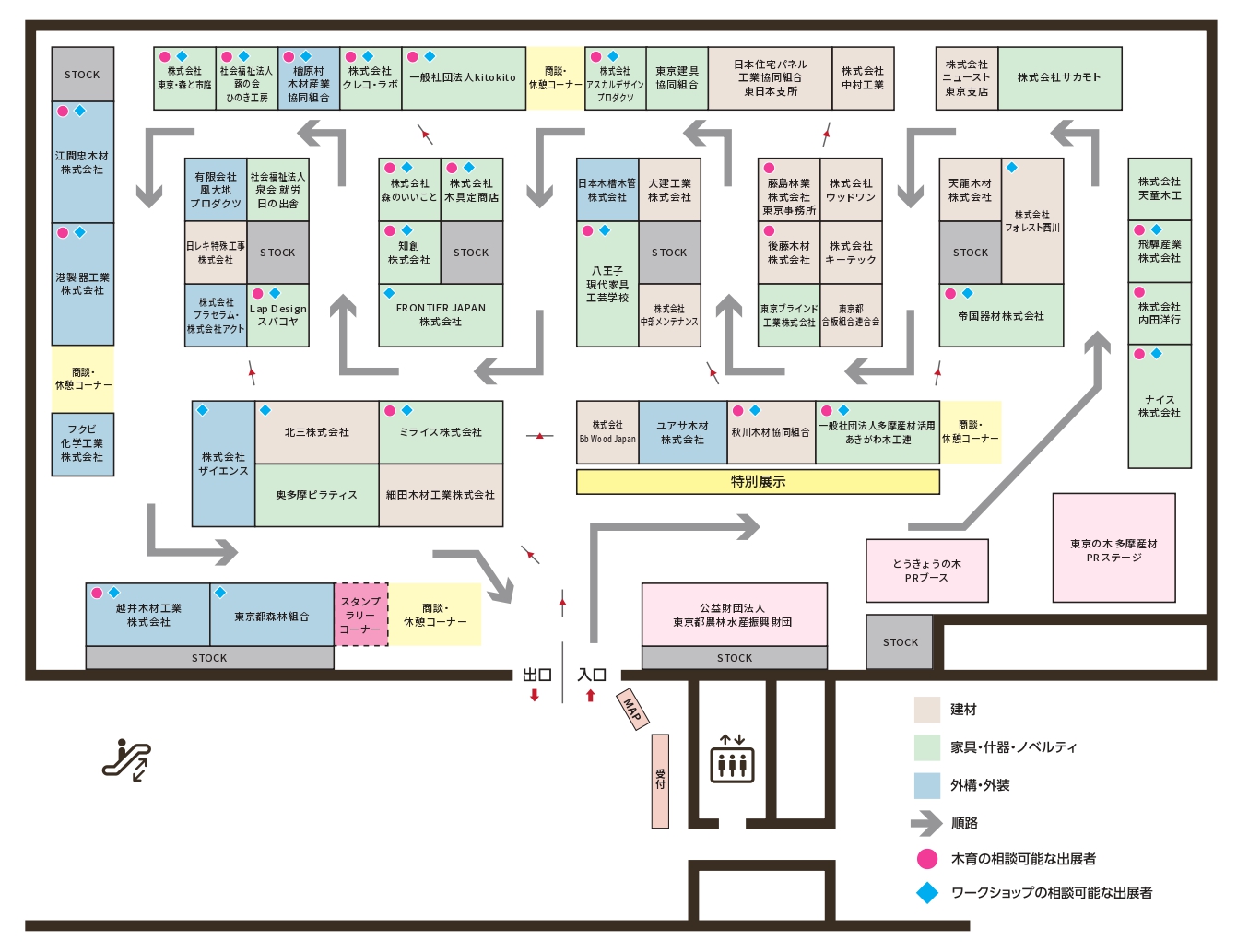 「東京の木 多摩産材利用拡大フェア2025」の会場図です。クリックすると大きく表示されます。